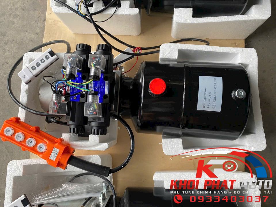 Bộ nguồn thuỷ lực cho xe tải dùng điện 12V 24V làm bửng nâng xe tải hệ thống nâng hạ thiết bị có điều khiển từ xa Moto bơm thuỷ lực ty nâng thuỷ lực